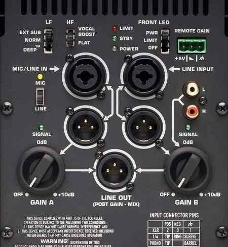 Onboard mixer with two combo XLR and ¼” inputs, and stereo RCA inputs, (three audio input sources); two direct channel outputs and single summed balanced output