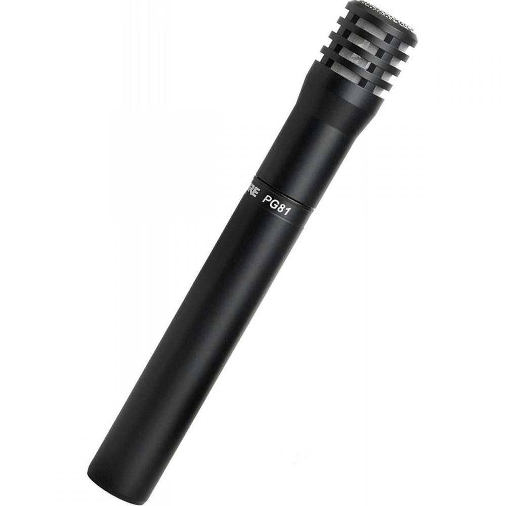 Descrição O Microfone de Instrumento de Condensador Cardioide Shure PG81 possui uma resposta de frequência plana, é alimentado com phantom power externo ou bateria AA e é ideal para capturar vocais, instrumentos e gabinetes de amplificador na gravação ou