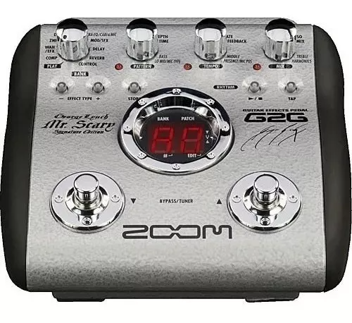 O ZOOM G2G – George Lynch “Mr. Scary” Signature Pedal é uma prática multifacetada, gravação e ferramenta de desempenho para guitarra. Combinando 54 efeitos, 40 (20 vivos e 20 estúdios) com base nas criações de George Lynch e uma caixa de bateria embutida,